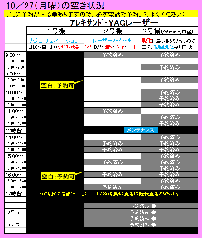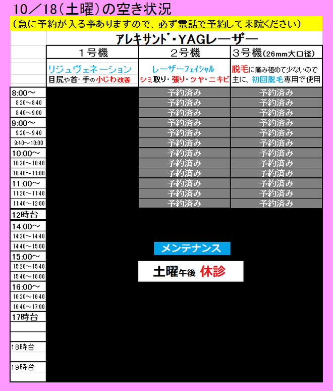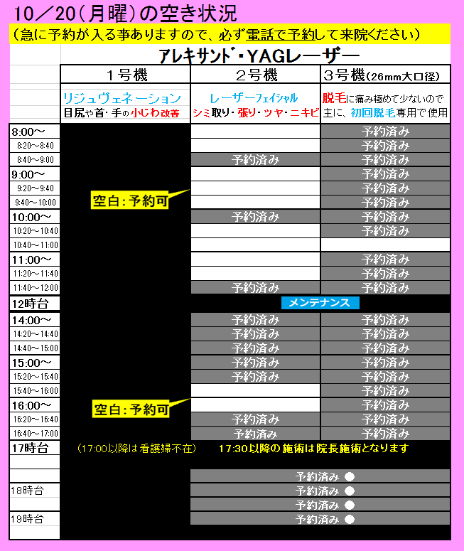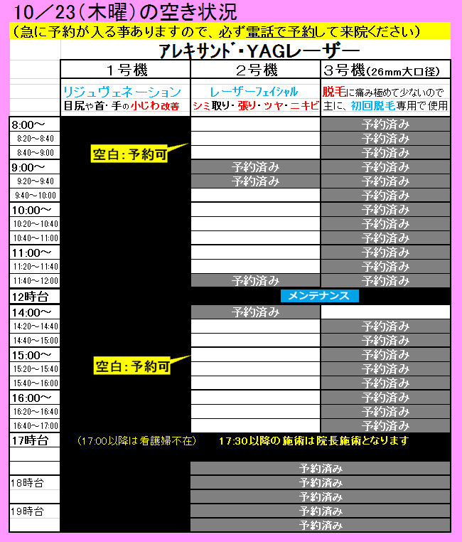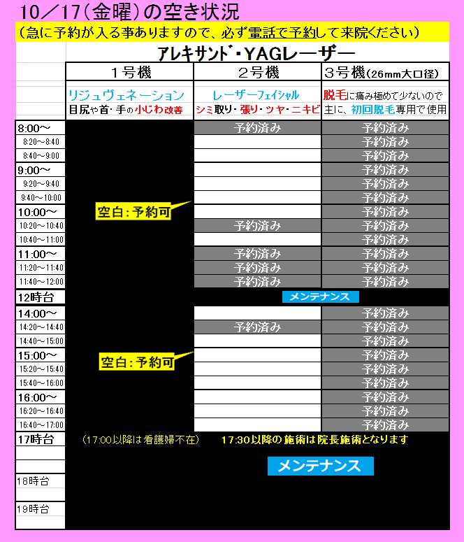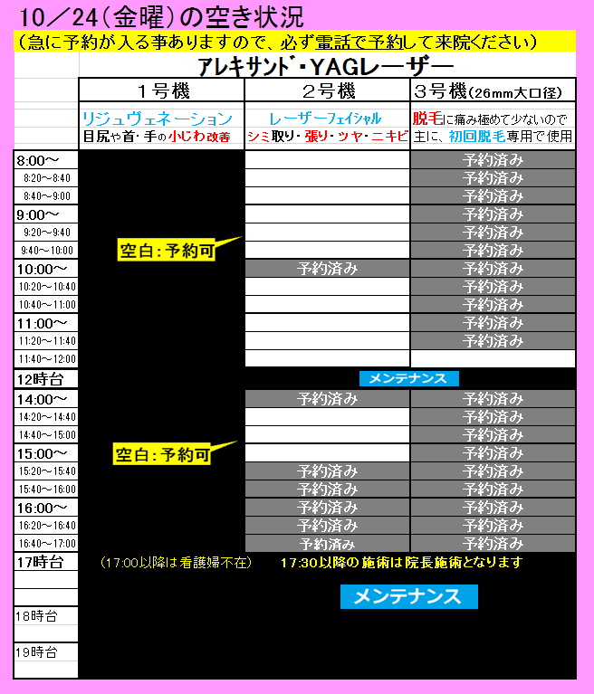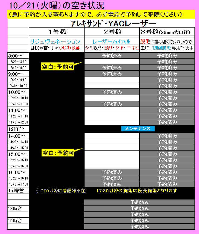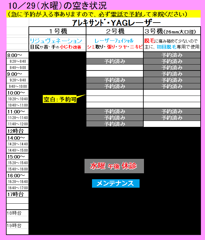 空白の時間帯が、レーザーをお受けできる時間です。