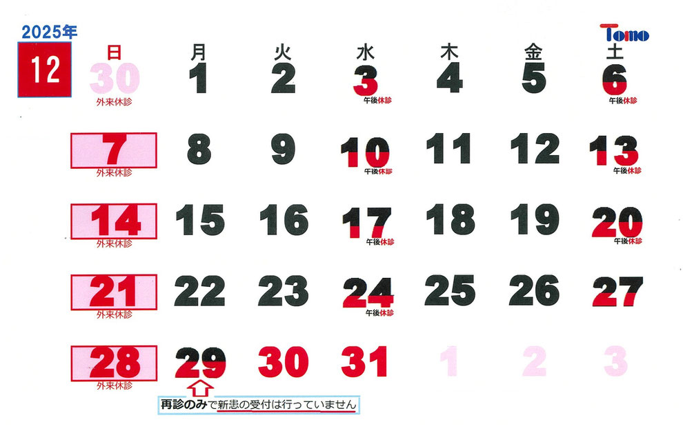 (黒字が外来診療日)